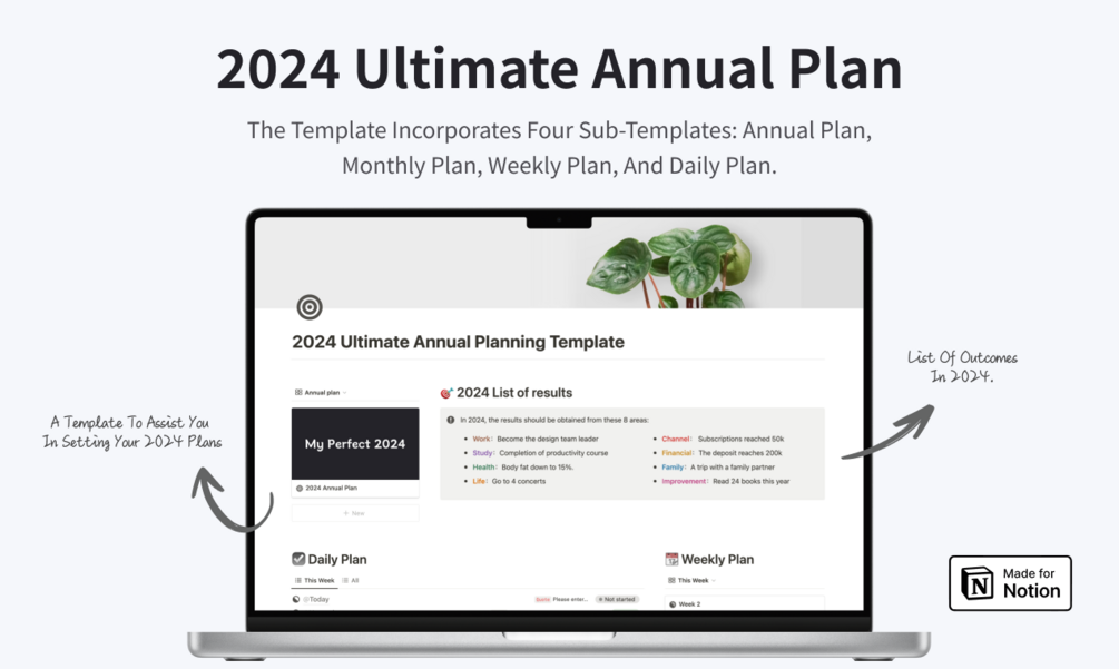 For just a $9 investment, you'll have a comprehensive and user-friendly planning system to assist you throughout the entire year, down to each day. Moreover, next year, you'll only need to add new data to kickstart a brand-new annual plan. A one-time payment for a lifetime of use.